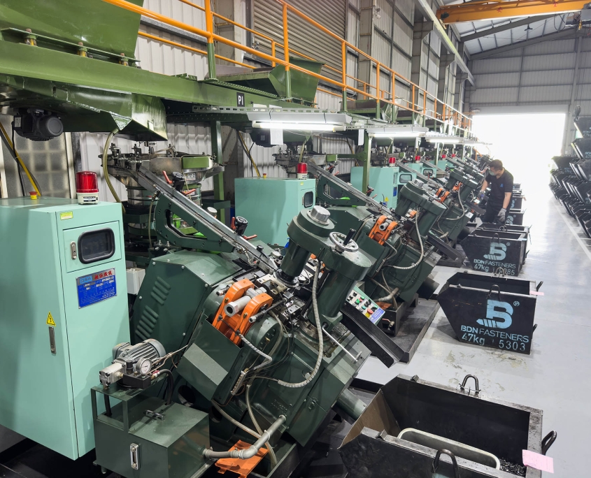 BDN Fasteners® are manufactured on a 3000 square meter area which is comprised of Heading, Pinch Pointing, Threading and End-Cutting machines with a total capacity of 800 metric tons per month.